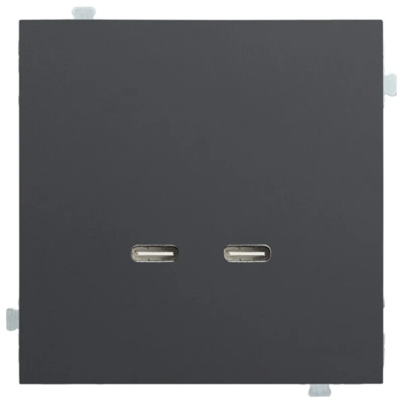 Зарядное устройство USB C/C состоит из двух компонентов — механизма с винтовым подключением и лицевой панели. Механизм зарядного устройства устанавливается в стандартный подрозетник с установочным диаметром 60 мм. Для окончательной сборки изделия необходимо добавить рамку с необходимым количеством постов.