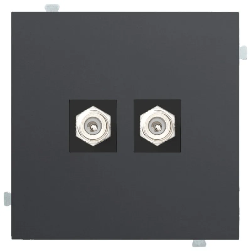 Розетка ТВ-спутник состоит из четырех компонентов — суппорта для информационной розетки, лицевой панели для информационной розетки, модуля с TV коннектором и модуля с F (SAT) коннектором. Суппорт розетки устанавливается в стандартный подрозетник с установочным диаметром 60 мм. Для окончательной сборки изделия необходимо добавить рамку с необходимым количеством постов.