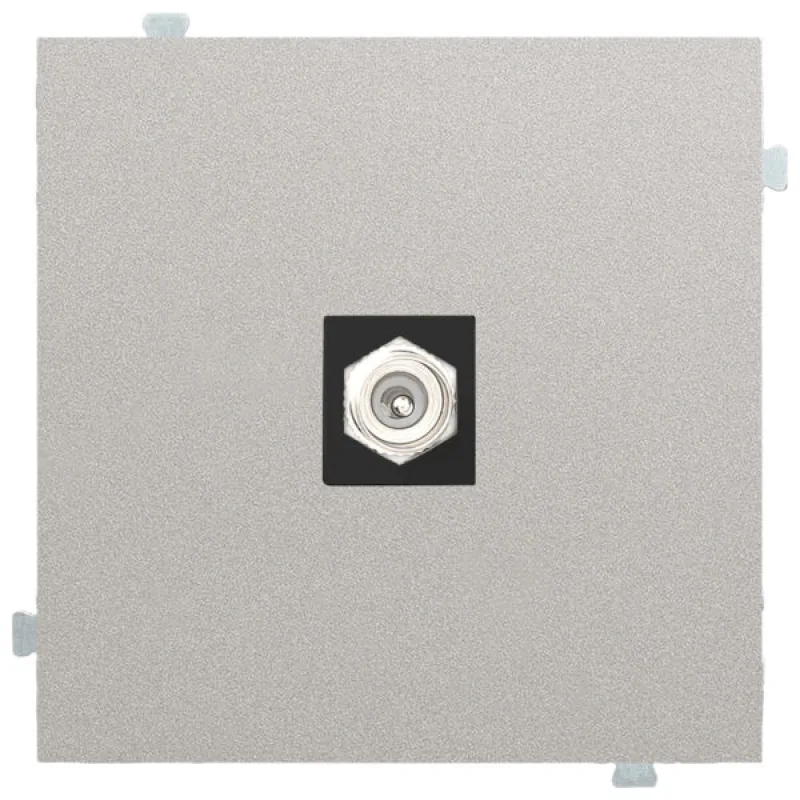 Розетка телевизионная состоит из трех компонентов — суппорта для информационной розетки, лицевой панели для информационной розетки и модуля с TV коннектором. Суппорт розетки устанавливается в стандартный подрозетник с установочным диаметром 60 мм. Для окончательной сборки изделия необходимо добавить рамку с необходимым количеством постов.