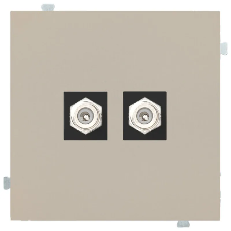 Розетка ТВ-спутник состоит из четырех компонентов — суппорта для информационной розетки, лицевой панели для информационной розетки, модуля с TV коннектором и модуля с F (SAT) коннектором. Суппорт розетки устанавливается в стандартный подрозетник с установочным диаметром 60 мм. Для окончательной сборки изделия необходимо добавить рамку с необходимым количеством постов.