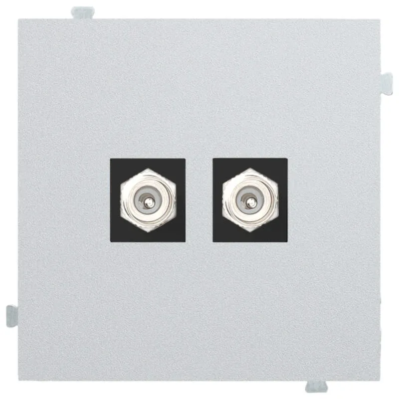 Розетка ТВ-спутник состоит из четырех компонентов — суппорта для информационной розетки, лицевой панели для информационной розетки, модуля с TV коннектором и модуля с F (SAT) коннектором. Суппорт розетки устанавливается в стандартный подрозетник с установочным диаметром 60 мм. Для окончательной сборки изделия необходимо добавить рамку с необходимым количеством постов.