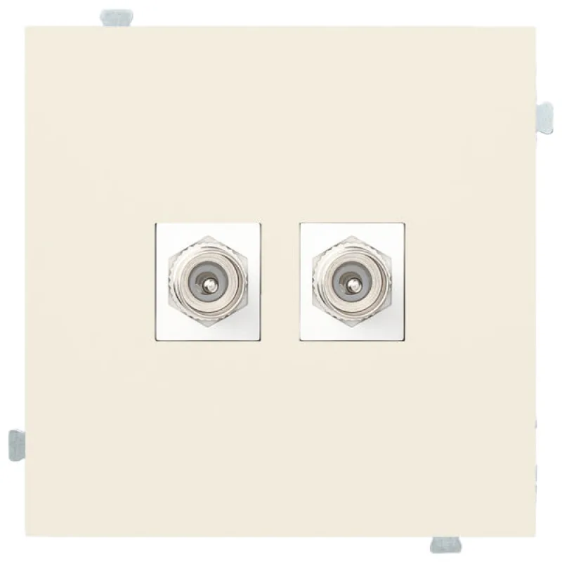 Розетка ТВ-спутник состоит из четырех компонентов — суппорта для информационной розетки, лицевой панели для информационной розетки, модуля с TV коннектором и модуля с F (SAT) коннектором. Суппорт розетки устанавливается в стандартный подрозетник с установочным диаметром 60 мм. Для окончательной сборки изделия необходимо добавить рамку с необходимым количеством постов.