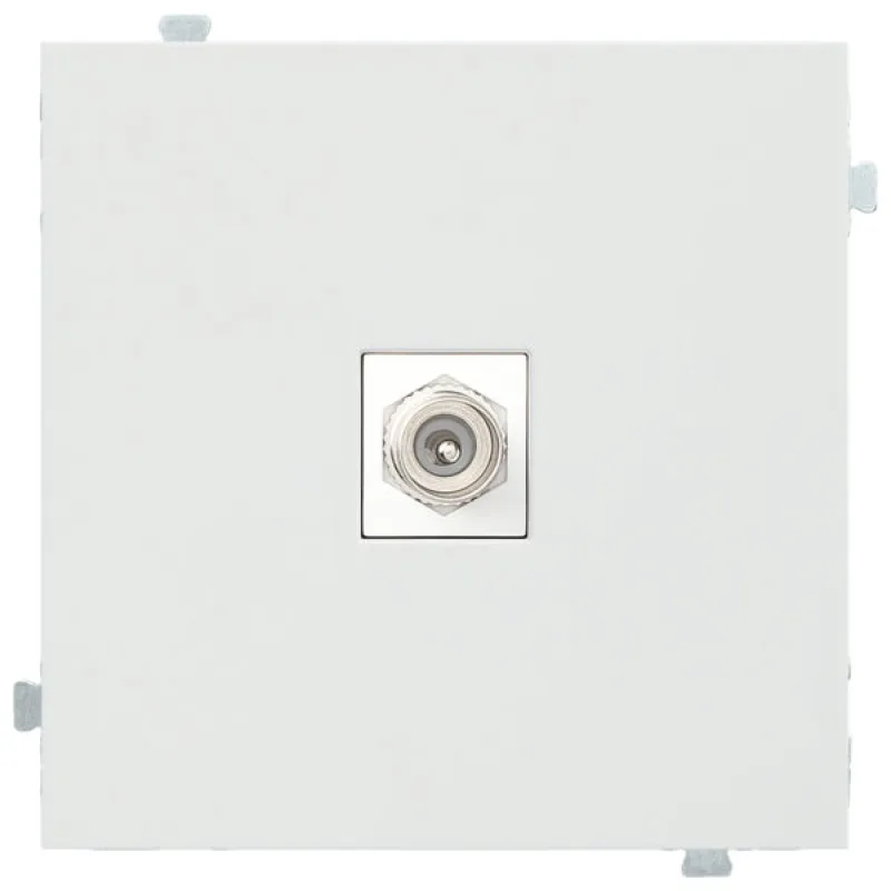 Розетка телевизионная состоит из трех компонентов — суппорта для информационной розетки, лицевой панели для информационной розетки и модуля с TV коннектором. Суппорт розетки устанавливается в стандартный подрозетник с установочным диаметром 60 мм. Для окончательной сборки изделия необходимо добавить рамку с необходимым количеством постов.