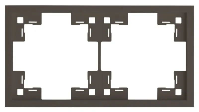 Рамка двухместная предназначена для установки двух механизмов, фиксируется на металлических суппортах механизмов и прижимается лицевыми панелями или клавишами.