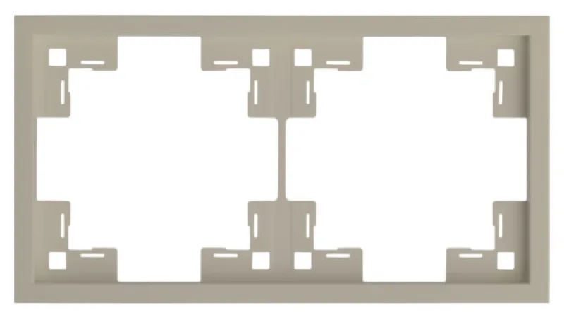 Рамка двухместная предназначена для установки двух механизмов, фиксируется на металлических суппортах механизмов и прижимается лицевыми панелями или клавишами.