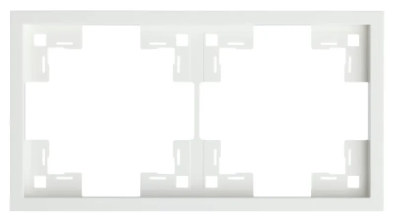 Рамка двухместная предназначена для установки двух механизмов, фиксируется на металлических суппортах механизмов и прижимается лицевыми панелями или клавишами.
