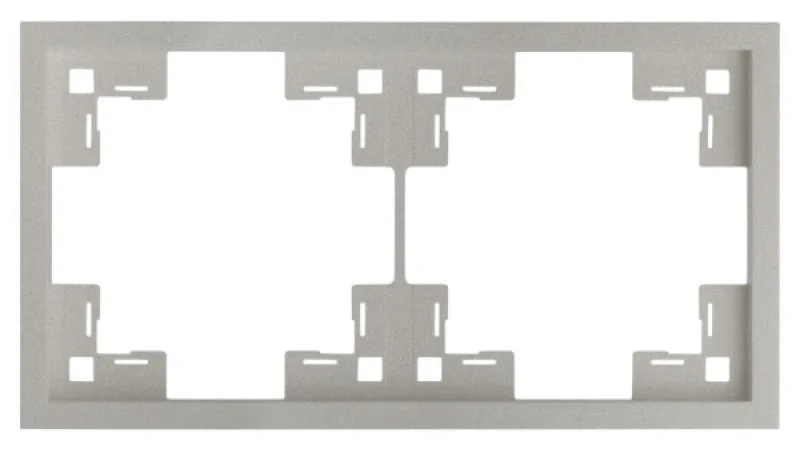 Рамка двухместная предназначена для установки двух механизмов, фиксируется на металлических суппортах механизмов и прижимается лицевыми панелями или клавишами.
