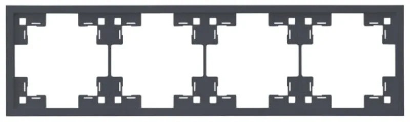 Рамка четырехместная предназначена для установки четырех механизмов, фиксируется на металлических суппортах механизмов и прижимается лицевыми панелями или клавишами.