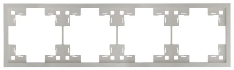 Рамка четырехместная предназначена для установки четырех механизмов, фиксируется на металлических суппортах механизмов и прижимается лицевыми панелями или клавишами.