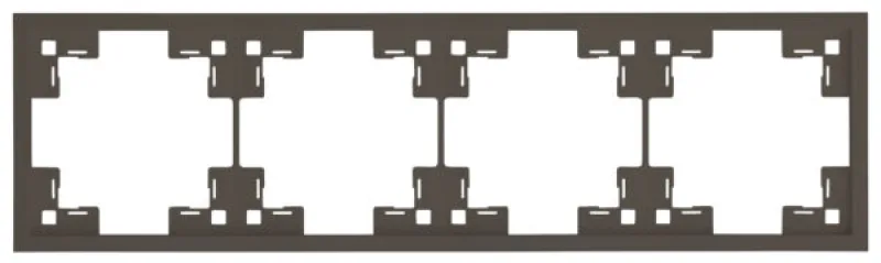 Рамка четырехместная предназначена для установки четырех механизмов, фиксируется на металлических суппортах механизмов и прижимается лицевыми панелями или клавишами.