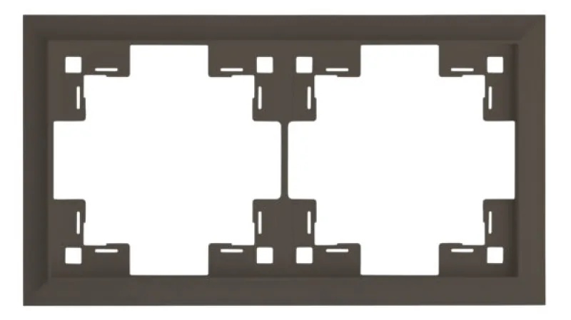 Рамка двухместная предназначена для установки двух механизмов, фиксируется на металлических суппортах механизмов и прижимается лицевыми панелями или клавишами.