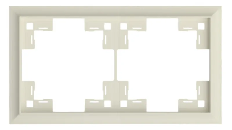 Рамка двухместная предназначена для установки двух механизмов, фиксируется на металлических суппортах механизмов и прижимается лицевыми панелями или клавишами.