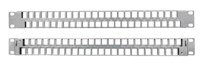 Hyperline PPBLHD-19-48S-SH-RM Модульная патч-панель 19"", 48 портов, Flat Type, 1U, для экранированных и неэкранированных модулей KJ2(C6A), KJNE, с задним кабельным организатором (без модулей)
