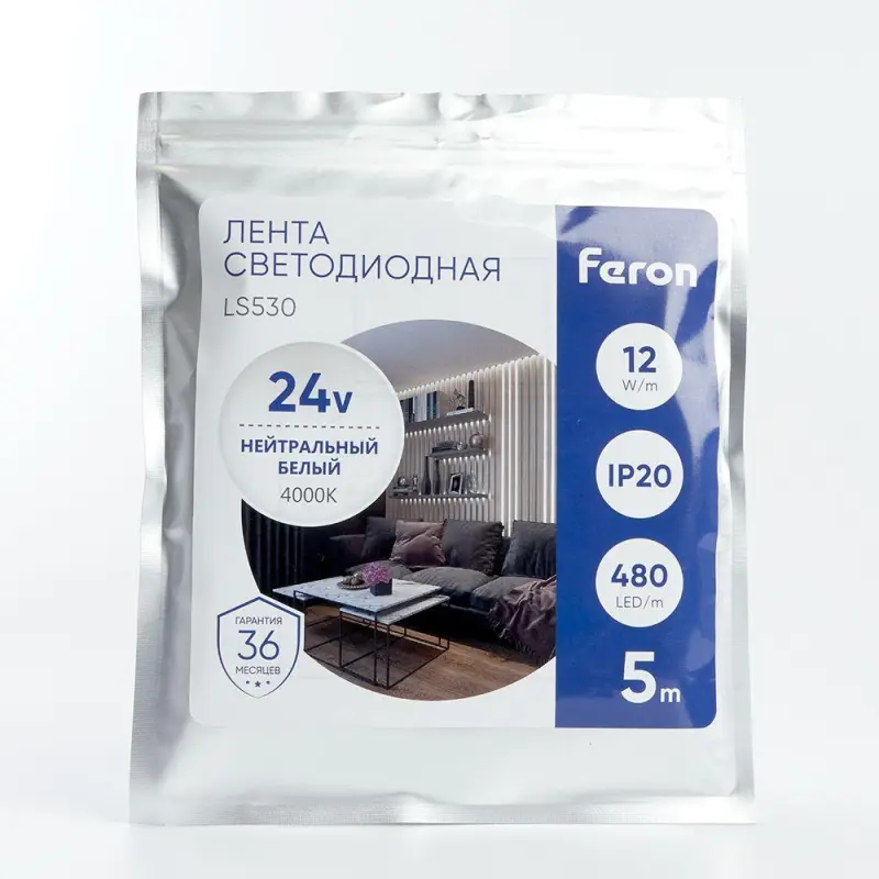 Светодиодная лента Feron 12W/m 480LED/m 2110SMD дневной белый 5M LS530 48271
