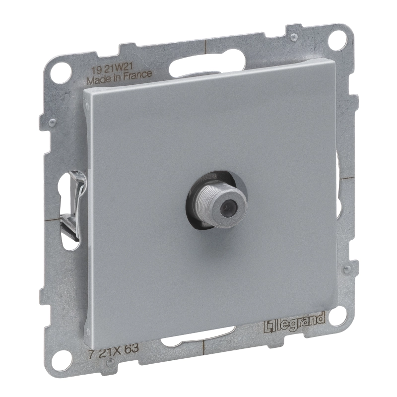SUNO. Розетка TV c топологией "звезда", с разъемом F-TYPE, 0-2400 МГц. Цвет "Алюминий"