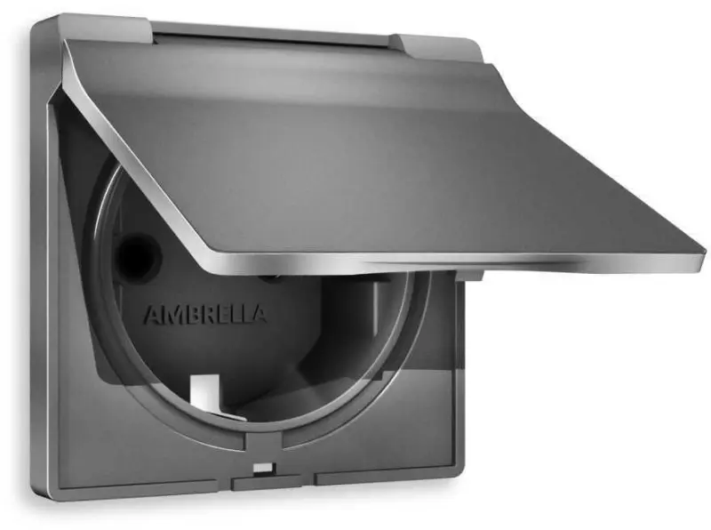 Лицевая панель ALFA (Антрацит серый) для электрической розетки с заземлением со шторками и защитной крышкой IP44 QUANT AP6580