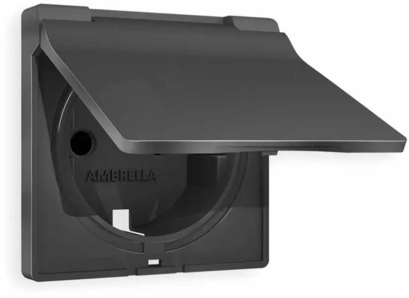 Лицевая панель ALFA (Графит Мягкое касание) для электрической розетки с заземлением со шторками и защитной крышкой IP44 QUANT AP9080