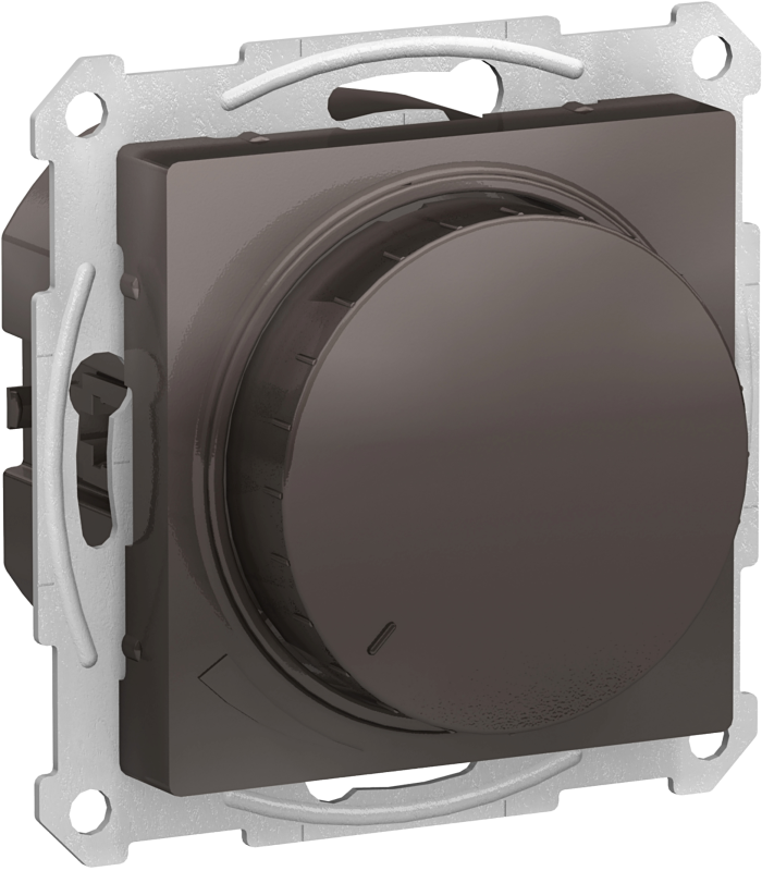 Механизм Systeme Electric (ранее Schneider Electric) серии AtlasDesign в цвете мокко светорегулятора поворотно-нажимного на выходную мощность 630 Вт.