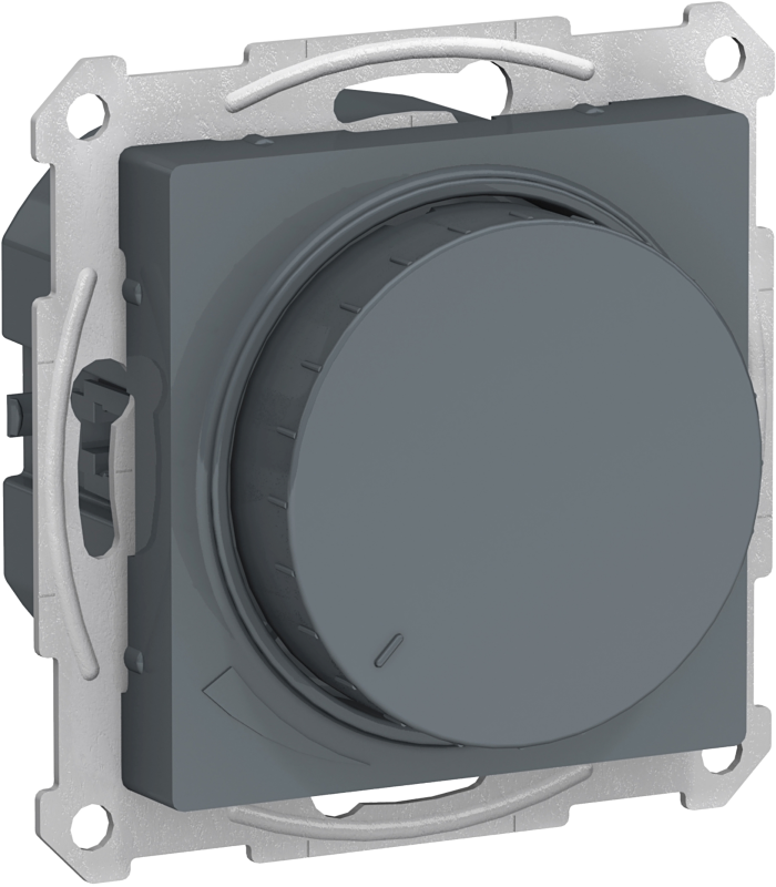 Механизм Systeme Electric (ранее Schneider Electric) серии AtlasDesign в цвете грифель светорегулятора поворотно-нажимного на выходную мощность 630 Вт.