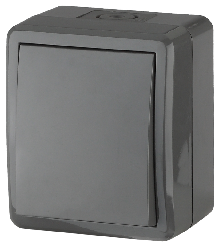 Выключатель влагозащищённый IP54 1-клавишный серии Эра Эксперт открытой уст. цвет серый 11-1401-03. Номинальные характеристики . Выключатель выполнен из качественного поликарбоната, оснащён уникальными винтовыми клеммами ЭКСПЕРТ для максимально качественного зажима кабеля в механизме.