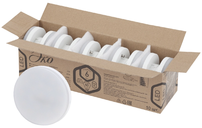 Лампочка светодиодная ЭРА RED LINE ECO LED GX-6W-840-GX53 (10-PACK) GX53 6Вт таблетка нейтральный белый свет
