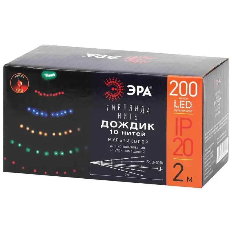 ENIN -2NM ЭРА Гирлянда LED Дождик 10 нитей 2 метра мультиколор 220V (60//1440)