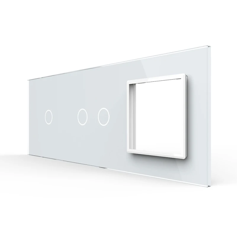 Панель для двух сенсорных выключателей и розетки Livolo, 3 клавиши (1+2), цвет белый, стекло