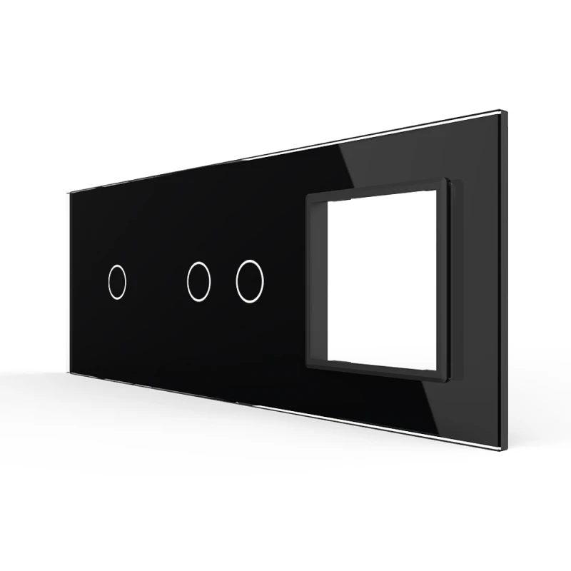 Панель для двух сенсорных выключателей и розетки Livolo, 3 клавиши (1+2), цвет черный, стекло
