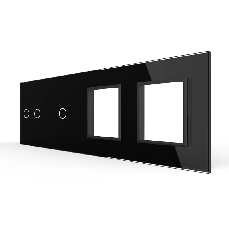 Панель для 2-х сенсорных выключателей и 2-х розеток Livolo, 3 клавиши (2+1), цвет черный, стекло