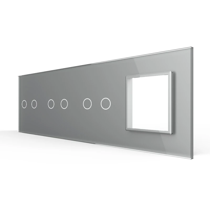 Панель для 3-х сенсорных выключателей и розетки Livolo, 6 клавиш (2+2+2), цвет серый, стекло