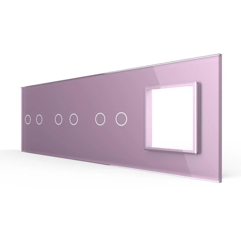 Панель для 3-х сенсорных выключателей и розетки Livolo, 6 клавиш (2+2+2), цвет розовый, стекло