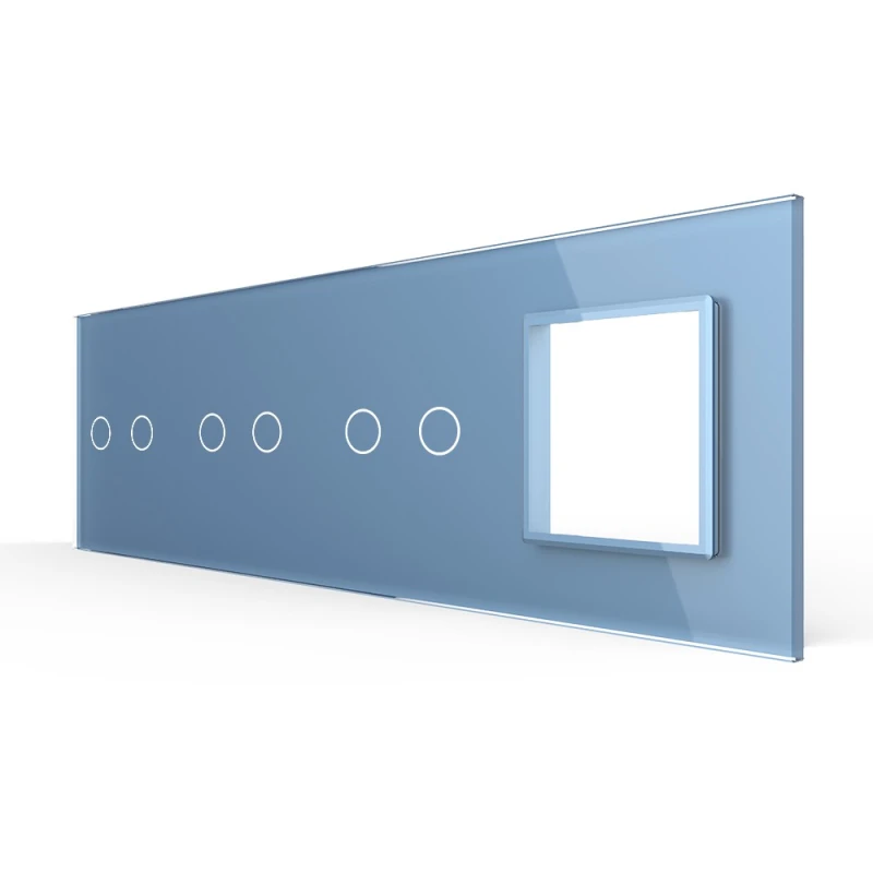 Панель для 3-х сенсорных выключателей и розетки Livolo, 6 клавиш (2+2+2), цвет синий, стекло