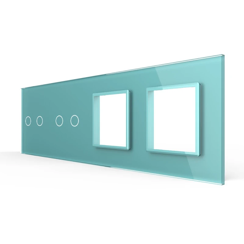 Панель для 2-х сенсорных выключателей и 2-х розеток Livolo, 4 клавиши (2+2), цвет зеленый, стекло
