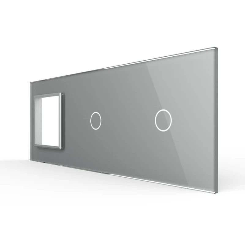 Панель для розетки и двух сенсорных выключателей Livolo, 2 клавиши (1+1), цвет серый, стекло