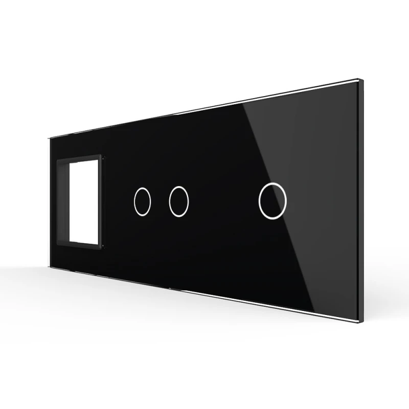 Панель для розетки и двух сенсорных выключателей Livolo, 3 клавиши (2+1), цвет черный, стекло