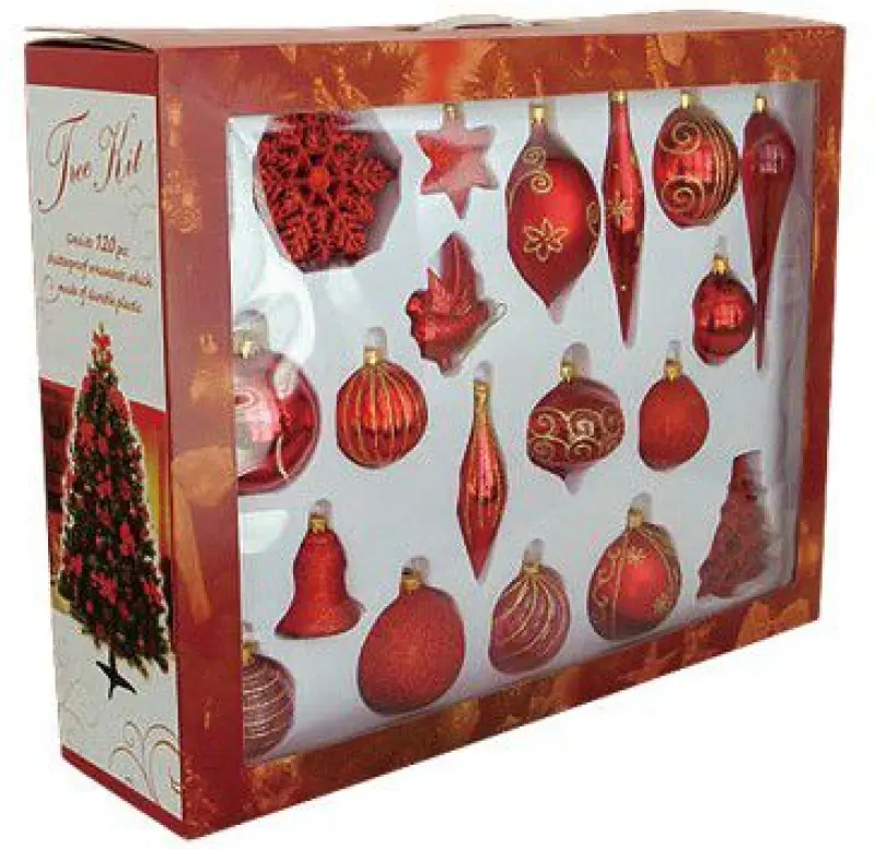 Набор для украшения елки "Комбо" (120 предметов), красный