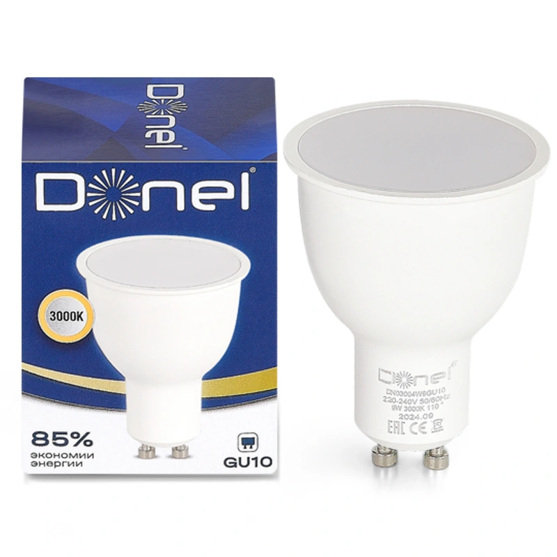 Donel, Светодиодная лампа 9Вт, MR16, 220В, GU10, 3000K, 675Лм, Ra>80, 110°, D50хH65мм, Серия: DN03