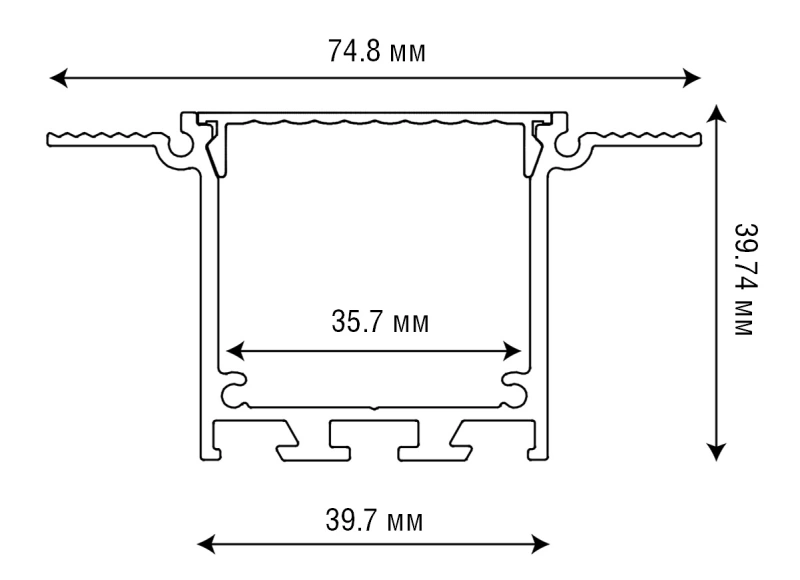 Встраиваемый алюминиевый профиль под шпаклевку, 40х76х2000. Цвет: Черный матовый, RAL9005, Серия:DN8ALE