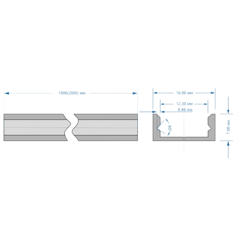 Накладной алюминиевый анодированный профиль, 16х7х2000