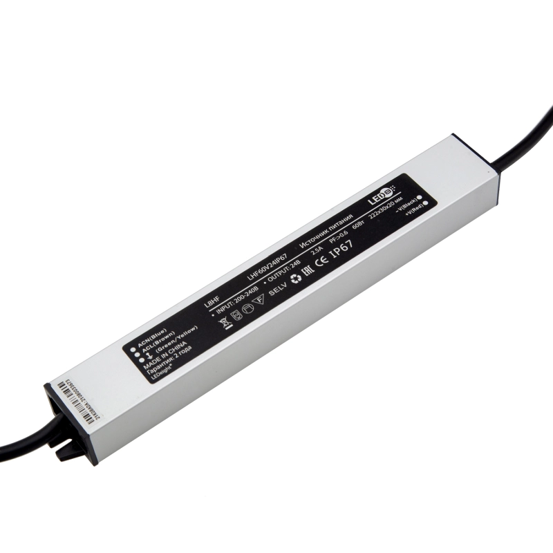 Donel,блок питания для светодиодной ленты 60Вт,DC24В,2.5А, IP67, 222x30x20мм,серия:DN8HF