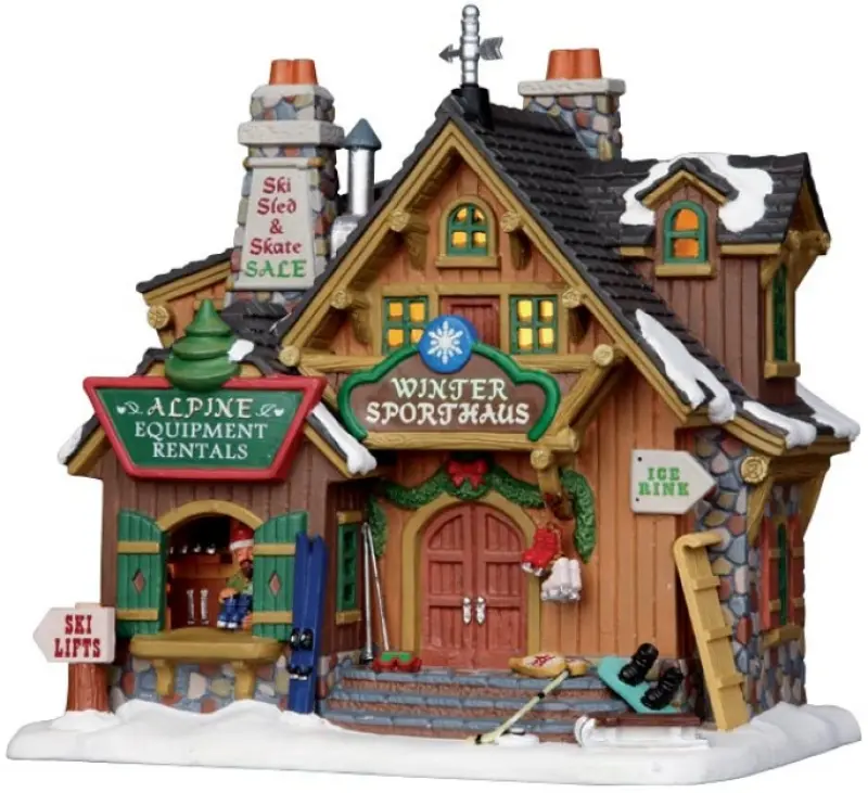 Создайте свой городок зимнего спорта Lemax и разместите в нем магазинчик зимнего спорта.