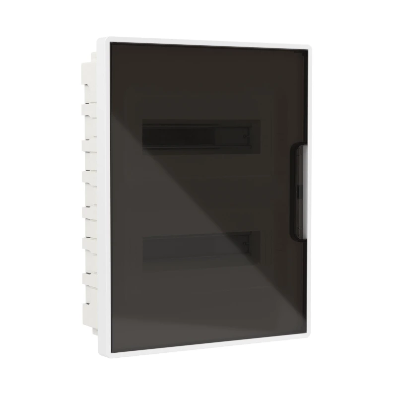 Щиток 24 мод встраиваемый FRAME, белый, с тонированной дверцей, с 4 шинами PEN (2шт на 8 отв. и 2шт на 6 отв.)