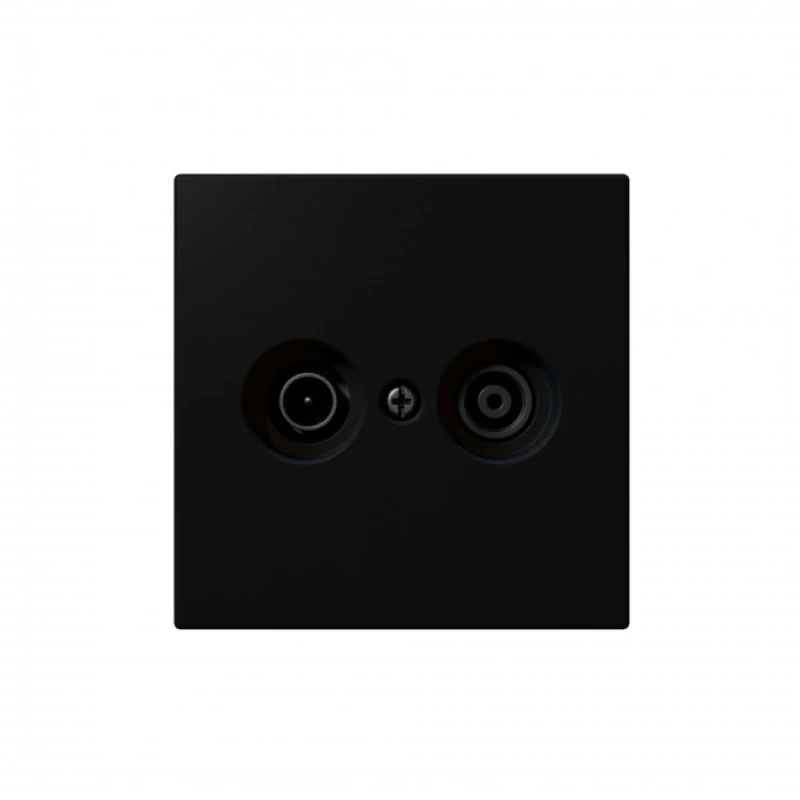Розетка TV+FM ?9.5mm проходная с накладкой, цвет Черный матовый (soft touch)