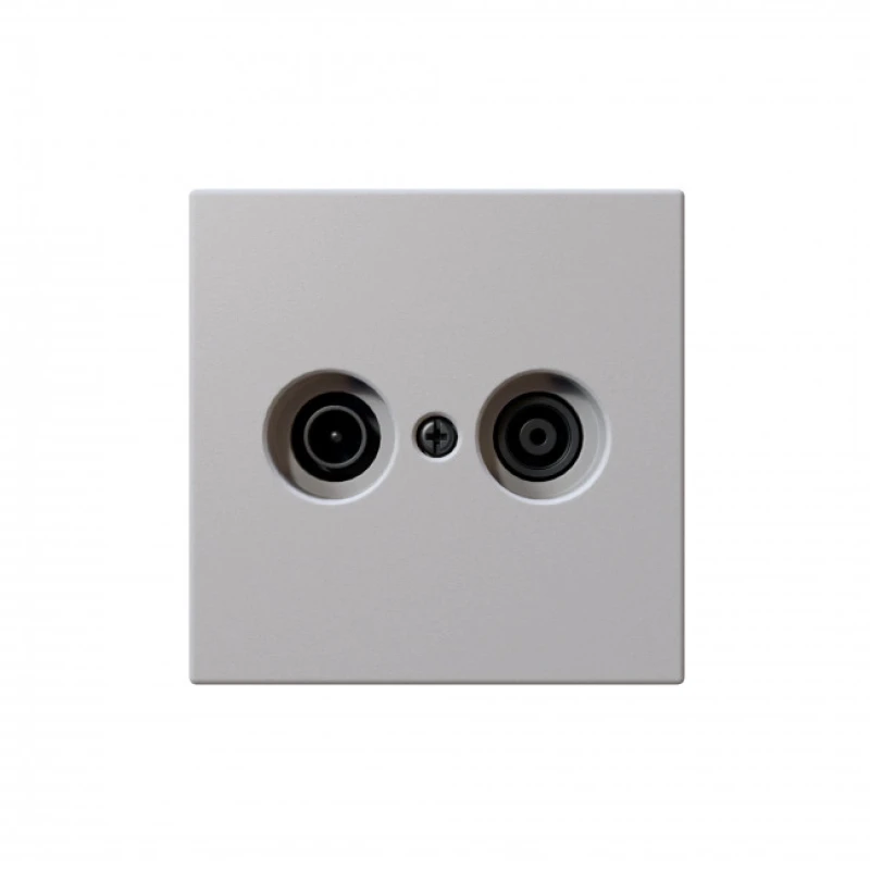 Розетка TV+FM ?9.5mm проходная с накладкой, цвет Белый матовый (soft touch)