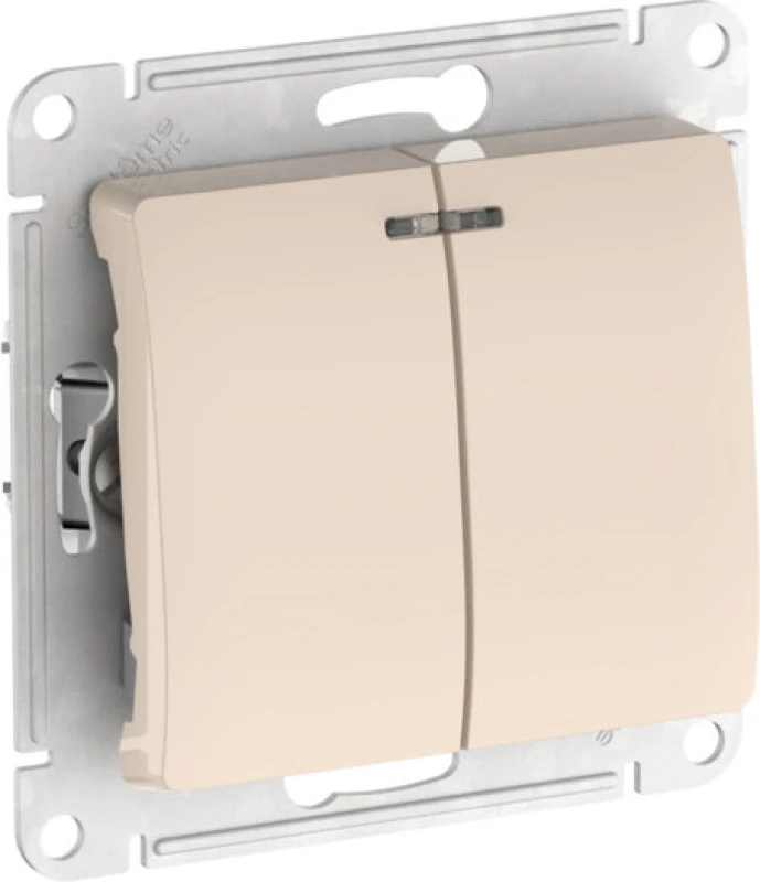 Механизм с быстрозажимными клеммами Systeme Electric (ранее Schneider Electric) серии Glossa (цвет бежевый) выключателя 2-клавишного с подсветкой подходит для сетей 250 В, на ток 10 А. С помощью новых быстрозажимных клемм монтаж розеток и выключателей стал намного быстрее. Теперь подключение не требует использования отвертки.