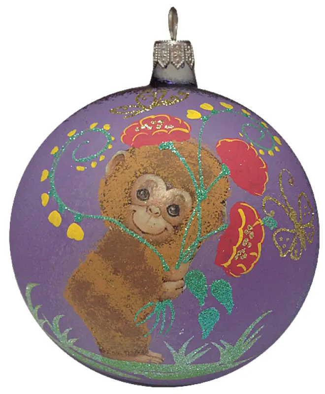 Игрушка елочная шар Обезьянка с цветами, фиолетовый глянец