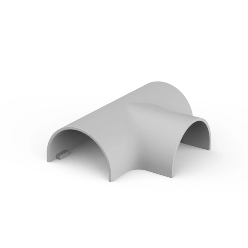 Тройник для арочных кабель-каналов Systeme Electric серии MultiSet в сером цвете предназначен для организации проворотов и ответвлений при открытой прокладке кабелей.