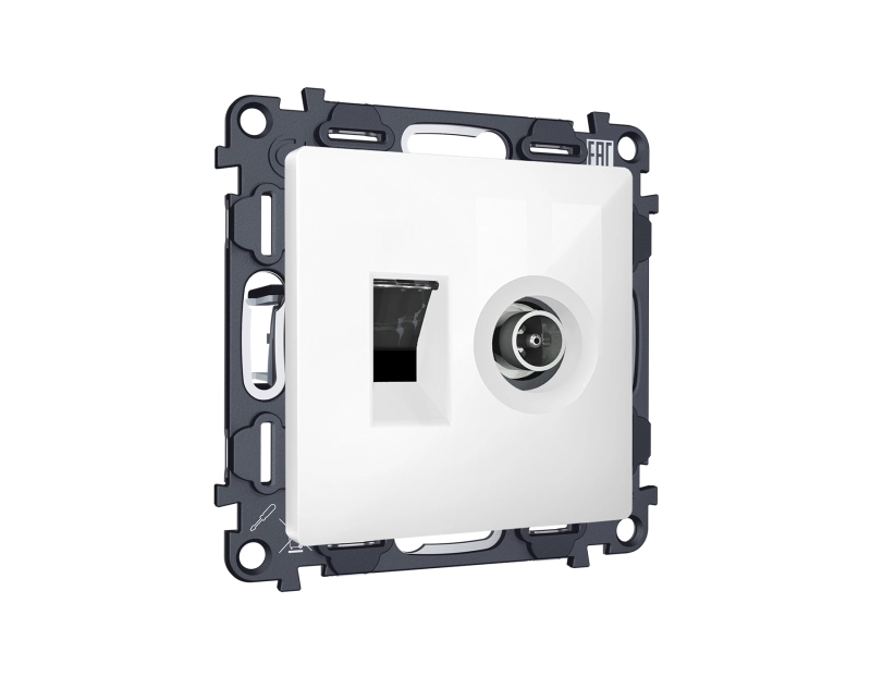 Комплект механизма розетки компьютерной + TV оконечной RJ-45 (8P8C) CAT6/50-870 MHz 1dB ALFA MA112510 Белый глянец QUANT (AP1125, VM195)