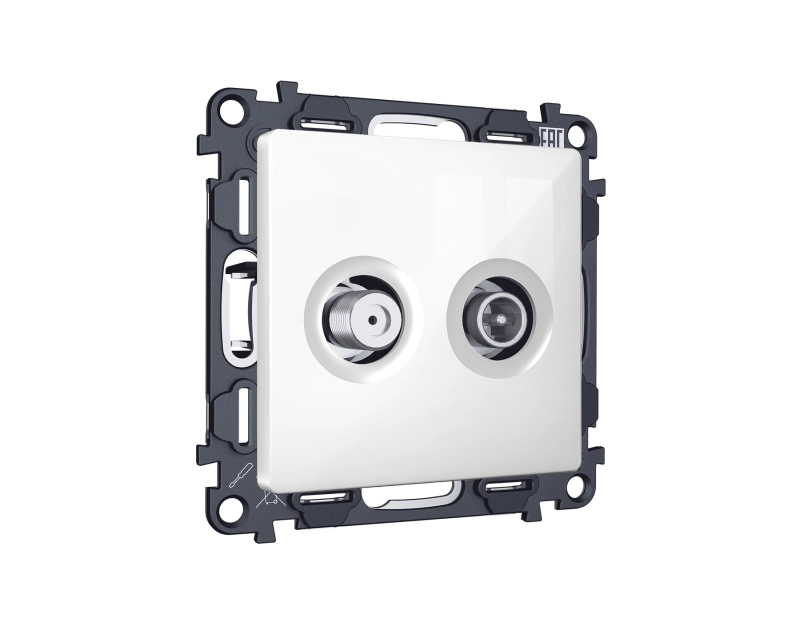 Комплект механизма розетки TV оконечной + SAT 5-862MHz 3.5dB/950-2150MHz 3.5dB ALFA MA113310 Белый глянец QUANT (AP1133, VM217)