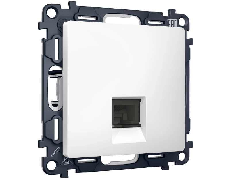 Комплект механизма компьютерной розетки RJ-45 (8P8C) CAT6A экранированной с автоматической защитной шторкой ALFA MA132005 Белый матовый QUANT (AP1320, VM185)